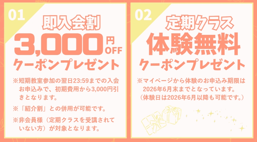 定期クラスの無料体験クーポンプレゼント!