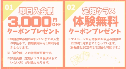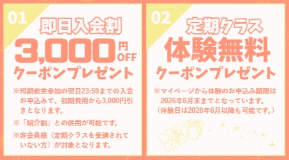 【キャンペーン】全拠点対象|対象種目の通常レッスン体験無料のお知らせ