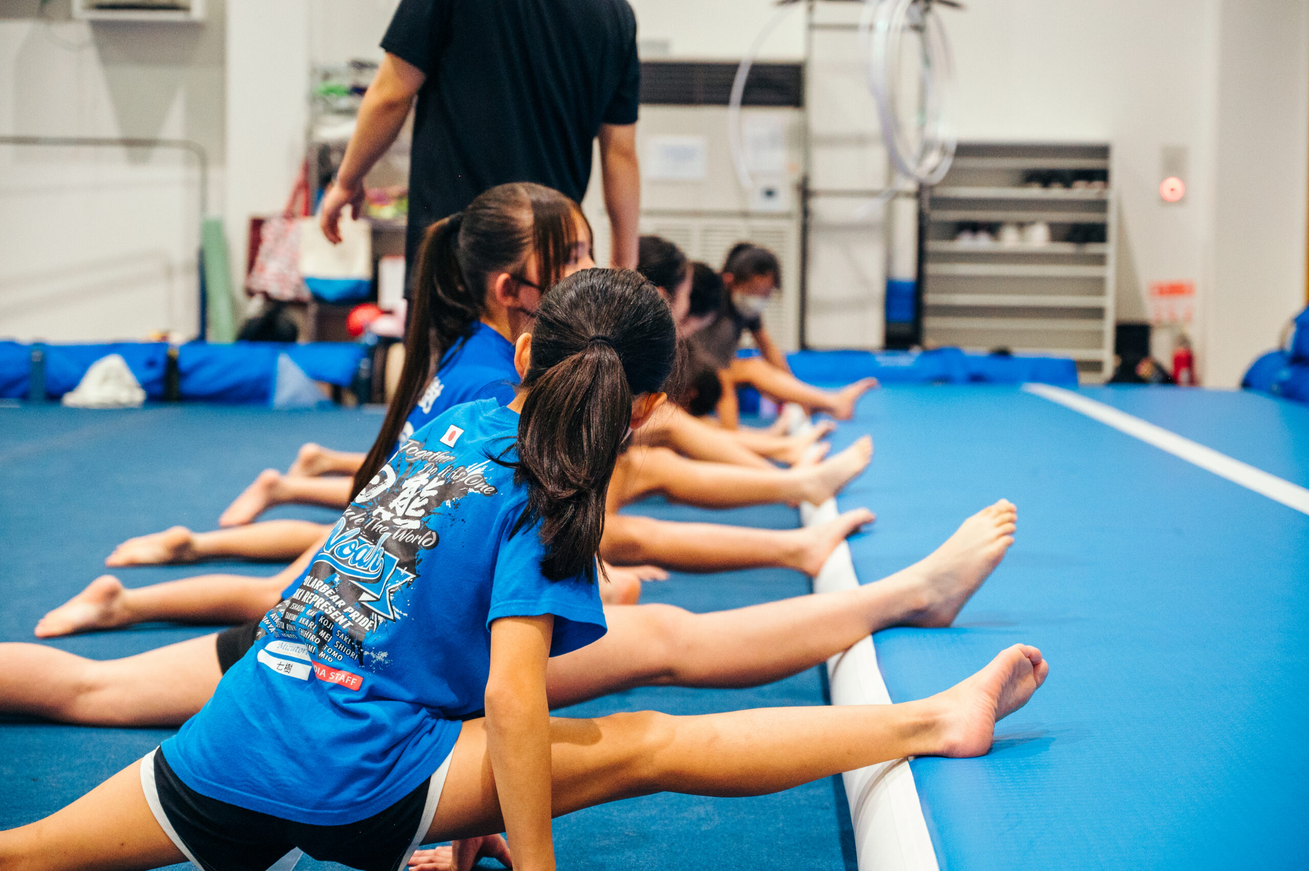 タンブリングには体幹・脚力・柔軟性が欠かせません。基礎トレーニングを通して体の軸を安定させ、キレのあるジャンプやダイナミックな技につながる身体づくりを行います。