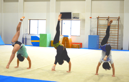 マット、補助器具、タンブリング専用スペースなど、技の習得をサポートするための設備を整えています。