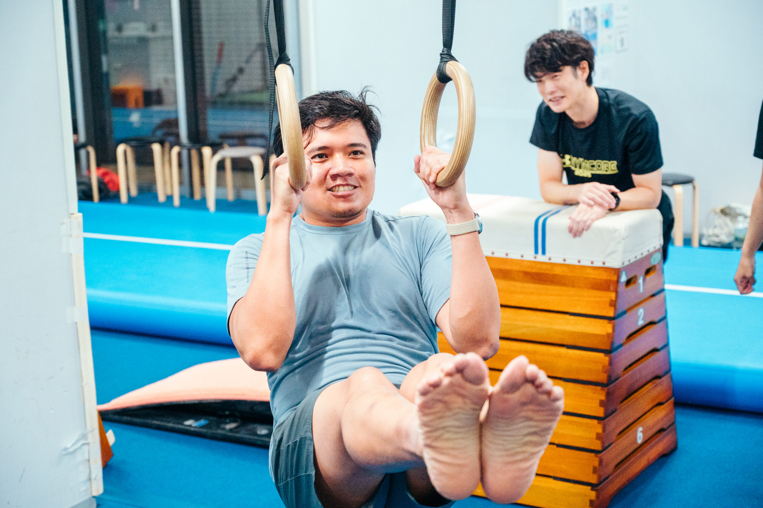 大人になってから「思いきり身体を動かす楽しさ」を味わいたい——そんなあなたに。 GYMCORE は、体操選手のトレーニング要素をベースにした日本初の“大人向け体操フィットネスプログラム”。マット運動や鉄棒、跳び箱、つり輪、トランポリンなど、多彩な器具と動きで、ただの筋トレでは得られない“身体操作性”と“達成感”が得られます。初心者や久しぶりに体を動かす人でも安心して参加できる環境で、「動ける身体」を手に入れませんか?