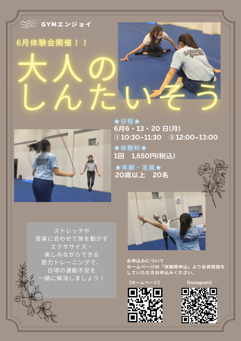 【体験会】新クラスGYMエンジョイ (大人のしんたいそう) 体験会のお知らせ【武蔵新城gym2号館】
