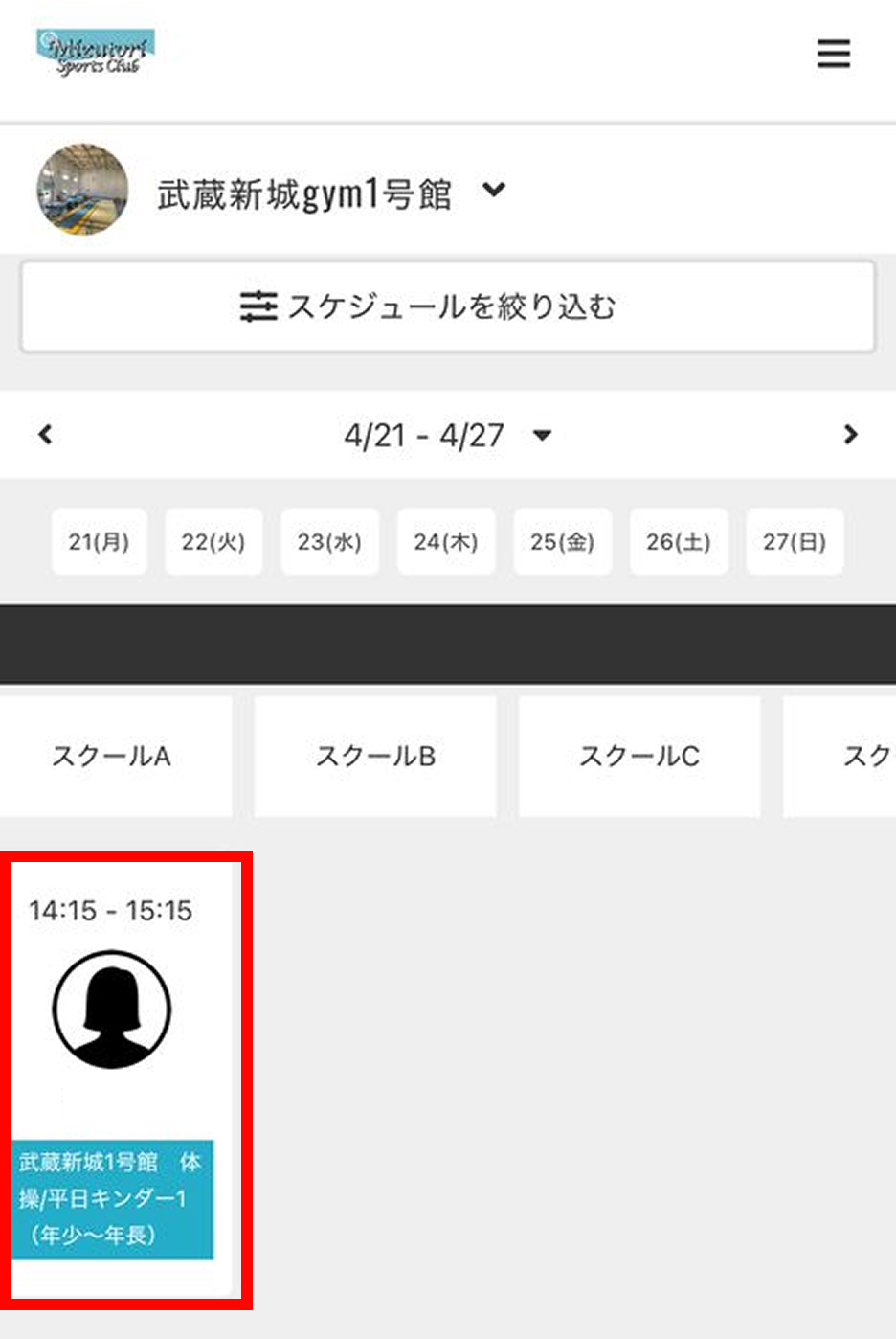 ご希望の店舗(例:武蔵新城gym1号館)を選択。 -