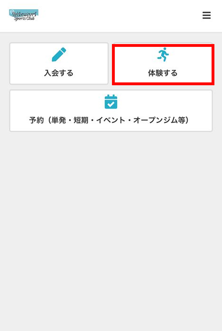 マイページのホーム画面から「体験する」ボタンをクリックし、